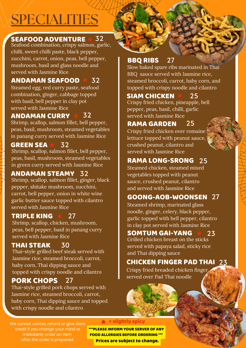 Seafood combination, sweet chilli paste, bell pepper, onion, scallion topped with tomato and cilantro served with Jasmine Rice